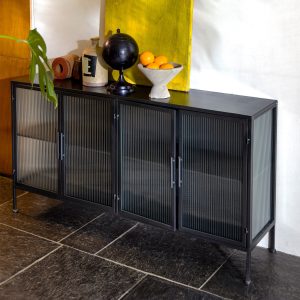 Industrieel Dressoir 'Rift Metal' 180cm met 4 glazen deuren