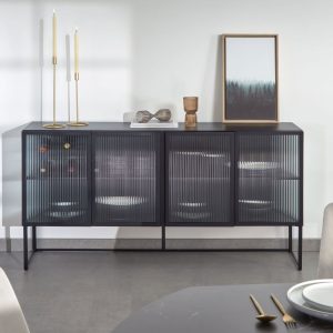 Kave Home Dressoir 'Trixie' Zwart metaal met glas, 160cm