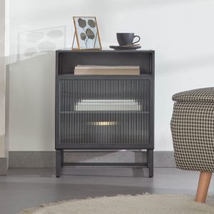 Kave Home Nachtkastje 'Trixie' Zwart metaal met glas, 58 x 45cm