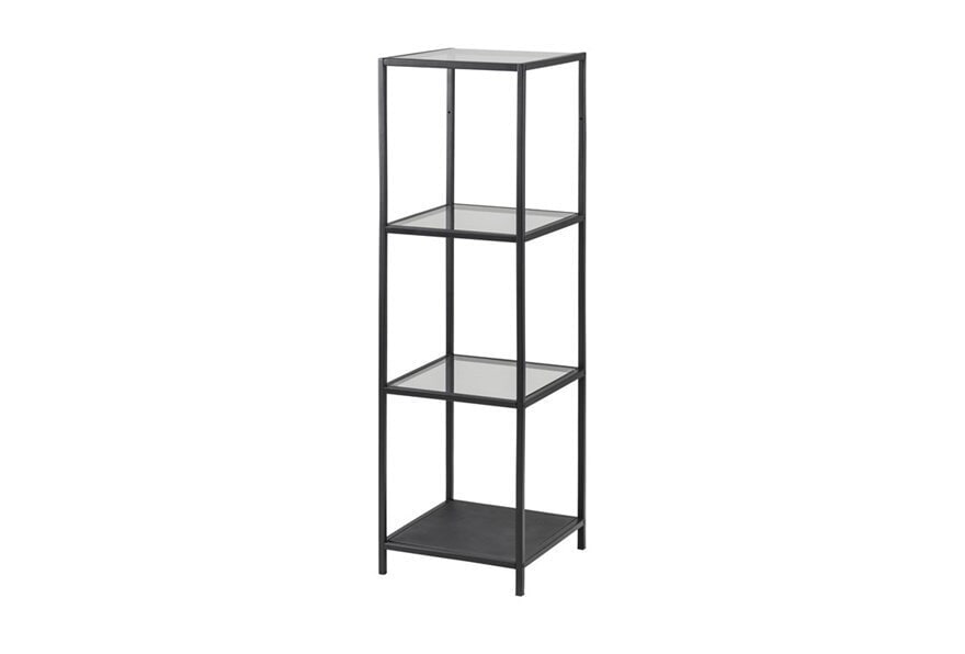 - Materiaal: Mat zwart gepoedercoat metaal met schapjes van veiligheidsglas
