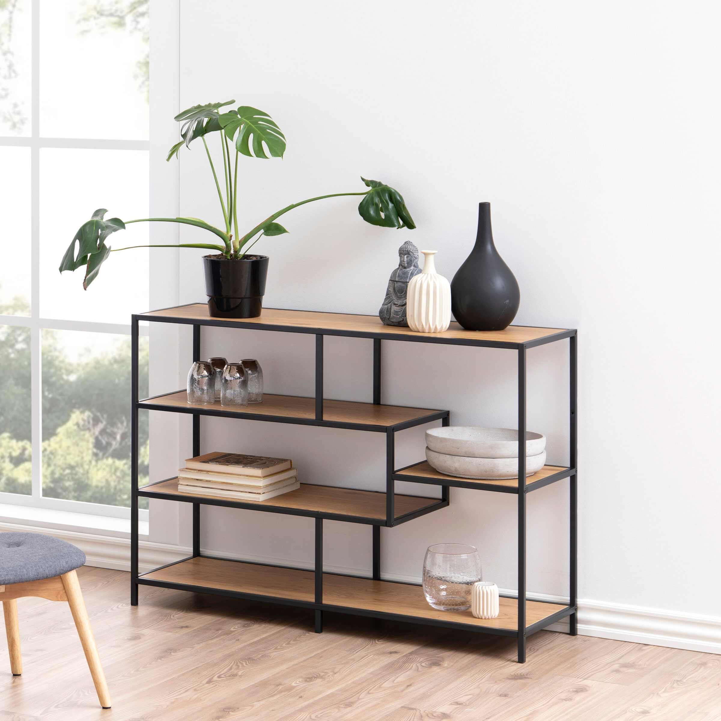 De boekenkast van zorgvuldig geselecteerde materialen is gemakkelijk te onderhouden. Met exclusieve ontwerprechten is deze boekenkast het perfecte accent om een kamer met stijl af te maken. Dit stuk heeft de persoonlijkheid om te passen bij vele stijlen van inrichting met een opvallend houteffect en ondersteund door een metalen onderstel met een poedercoating.