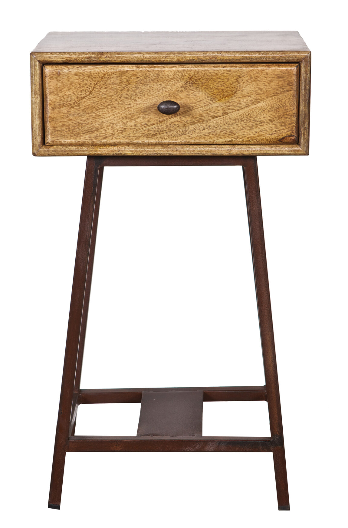 - Materiaal: Gelakt mangohout en metalen onderstel