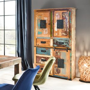 - Materiaal: Massief acaciahouten frame en massief mangohouten deuren. Gepoedercoat ijzeren onderstel en handgrepen