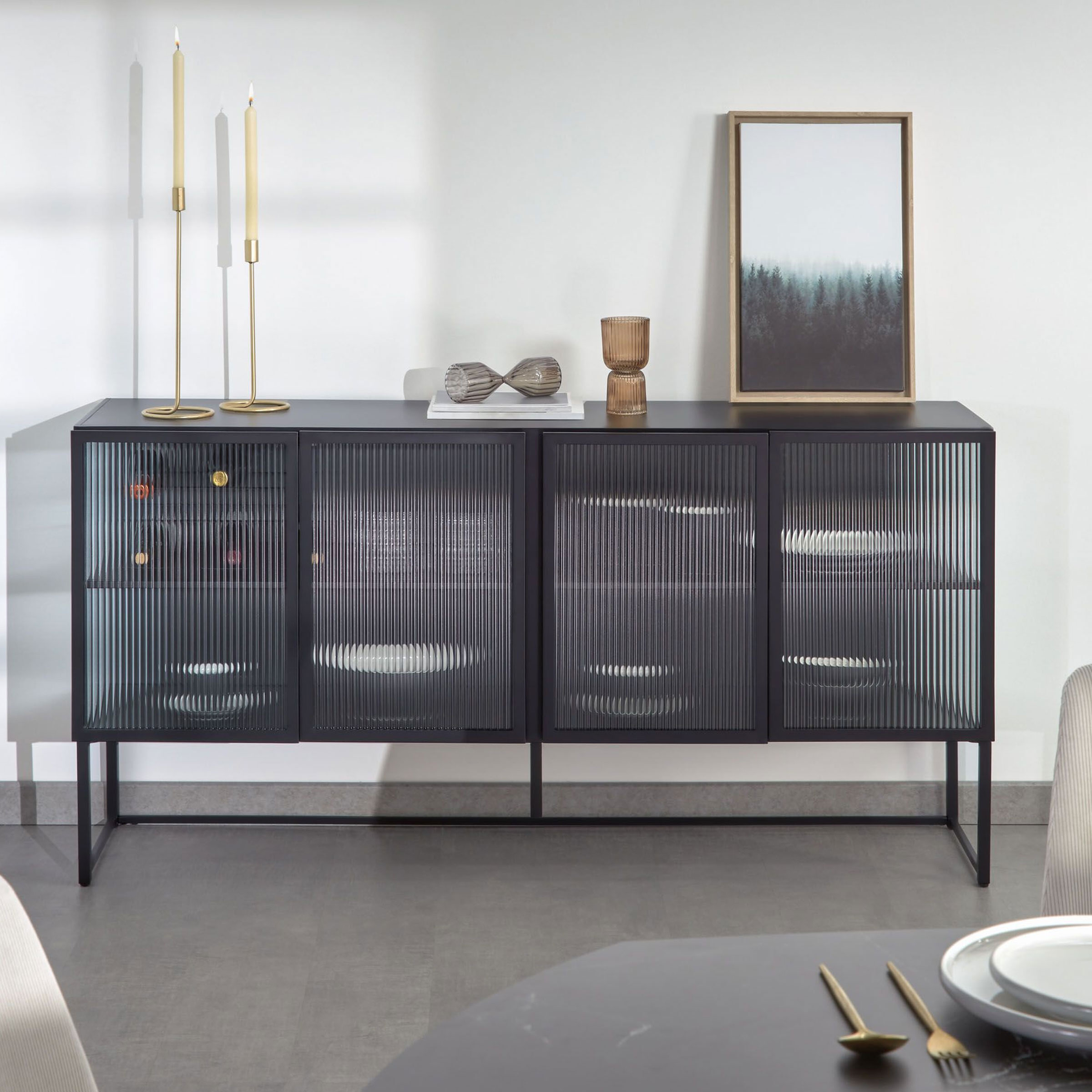 Kave Home Dressoir Trixie Zwart metaal met glas, 160cm