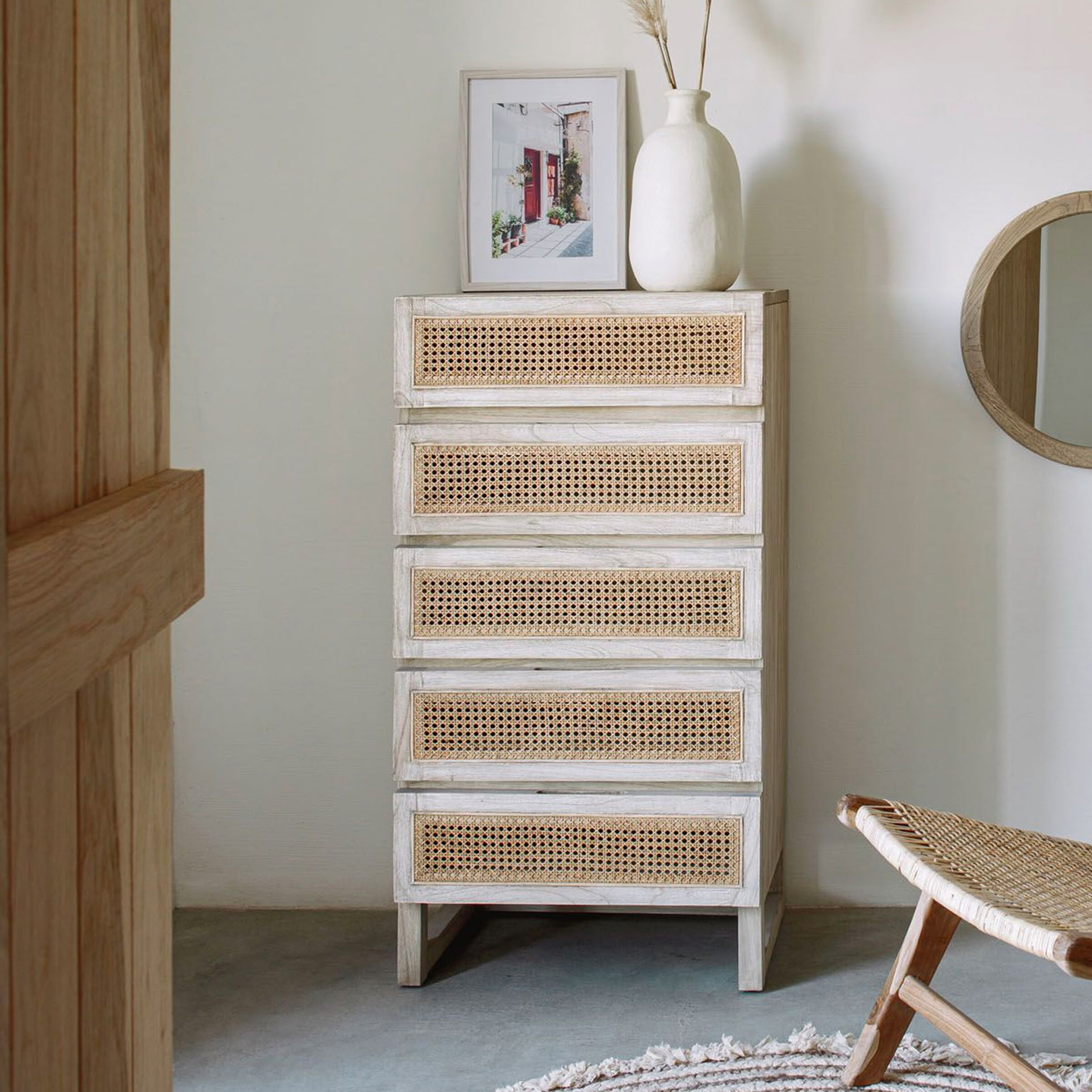 Ga je voor een moderne natuurlijke look? Met Rexit zit je helemaal goed. Gemaakt van duurzaam, massief mindihout en fineer met een voorkant van met de hand gevlochten rotan. Biedt veel opbergruimte en het is gemakkelijk om erin en eronder schoon te maken.