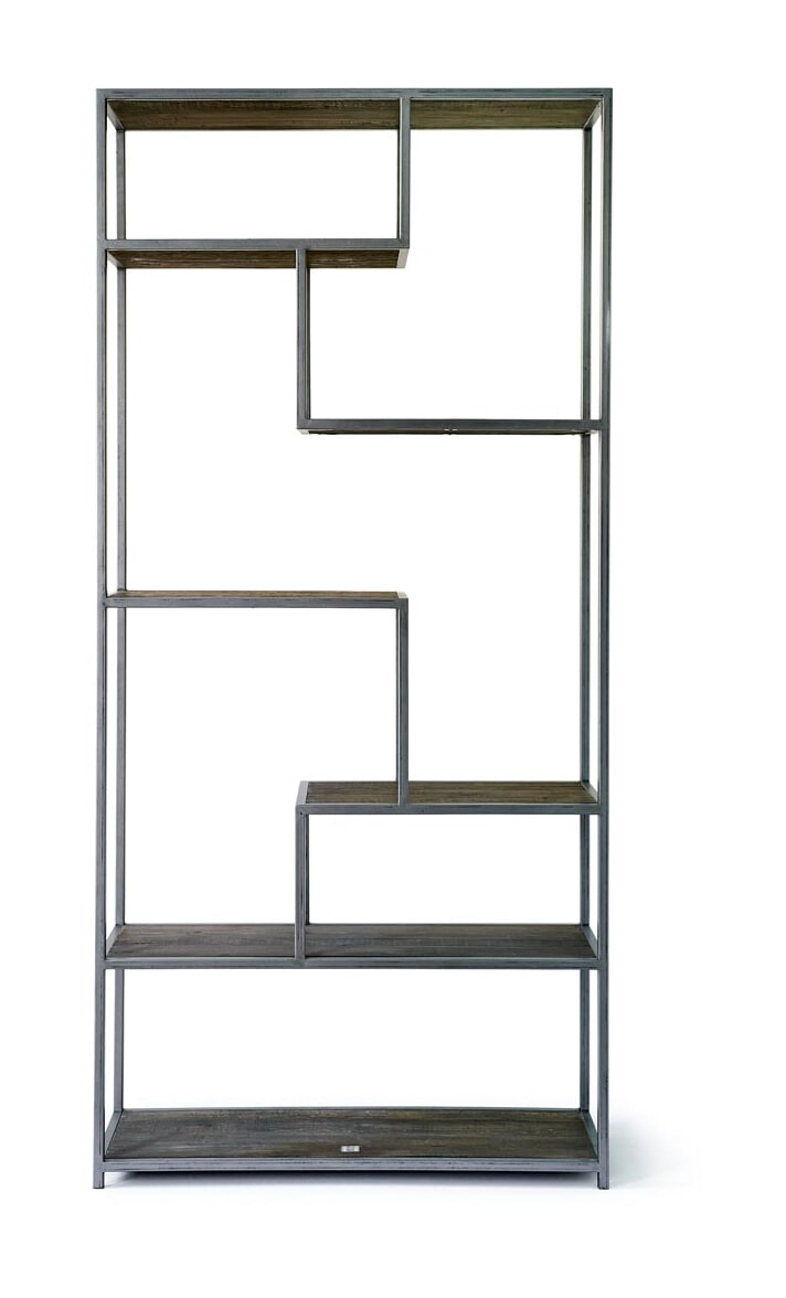 Een heerlijke open kast, waarin boeken kunnen staan. Maar ook leuke snuisterijen, groot en klein. Of die mooie wijnglazen, die gewoon juweeltjes zijn, zelfs zonder wijn. De planken op verschillende hoogten en in verschillende standen, maken de kast erg speels. Gemaakt van gerecycled eiken- en essenhout, dus milieuverantwoord. De metalen rand en poten maken de kast helemaal af.