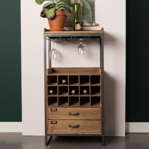 ZILT Industrieel Wijnkastje 'Joba' met 2 laden, 112,5 x 56cm